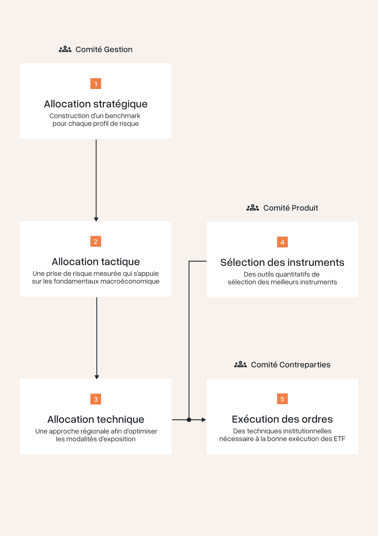 Chez Althéis, la sélection des ETF ne se limite pas à une approche passive. Elle repose sur un processus structuré en cinq étapes, combinant rigueur institutionnelle et technologie propriétaire :